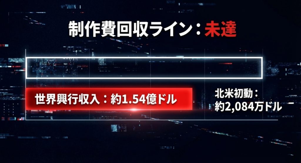 世界興収約1.54億ドル制作費回収ラインに届かず赤字の可能性大